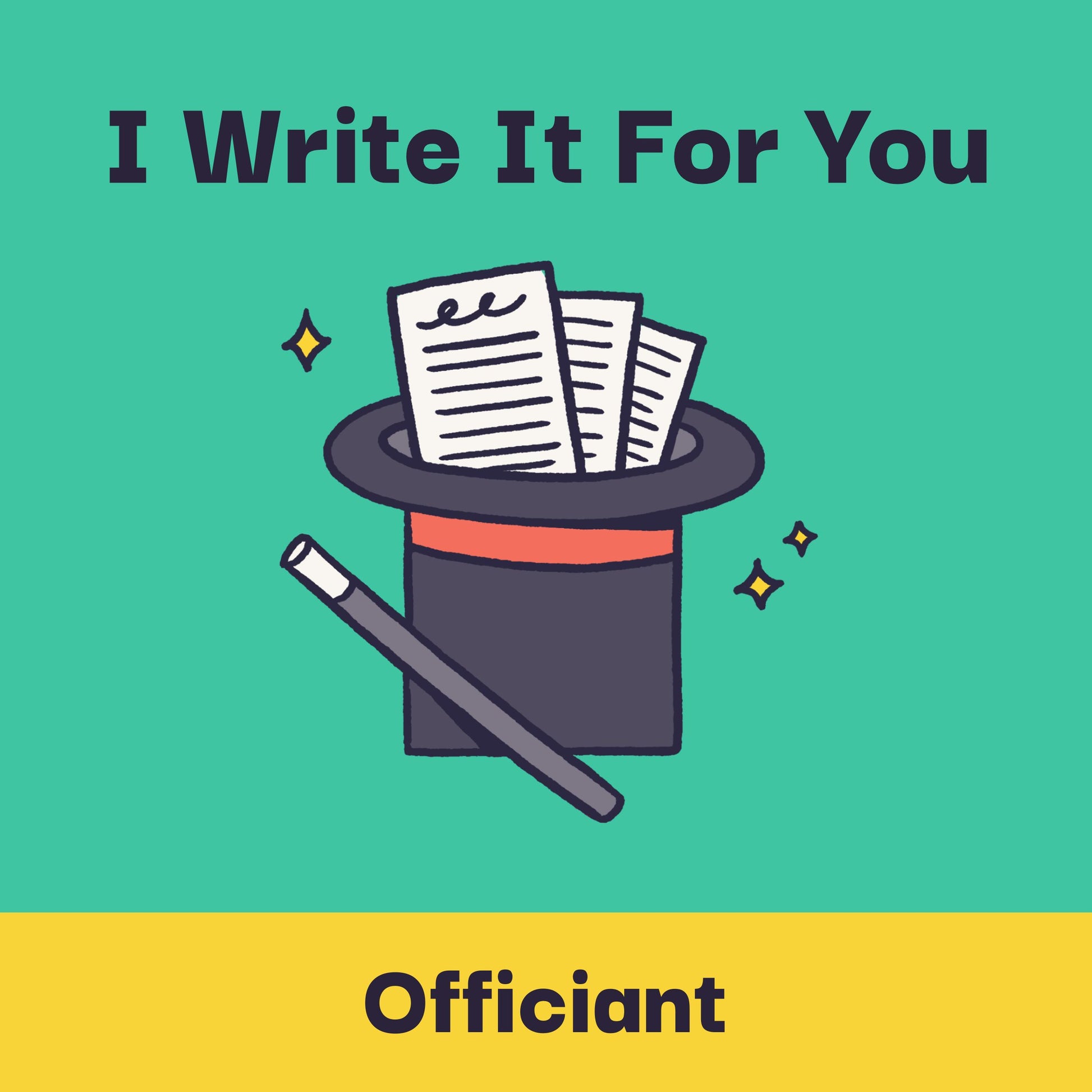 Family or friends asked you to officiate their ceremony? No pressure! Get award-winning help for a truly heartfelt and expertly funny wedding ceremony. This fully collaborative service includes a unique 15-20 minute ceremony, unlimited revisions and delivery coaching.